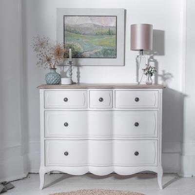 Store in style with the Adeline Chest of Drawers. Ample storage is provided with five drawers, perfect for clothes, linens, and other items to keep your space tidy and organised. The timeless design would effortlessly suit a traditional space.