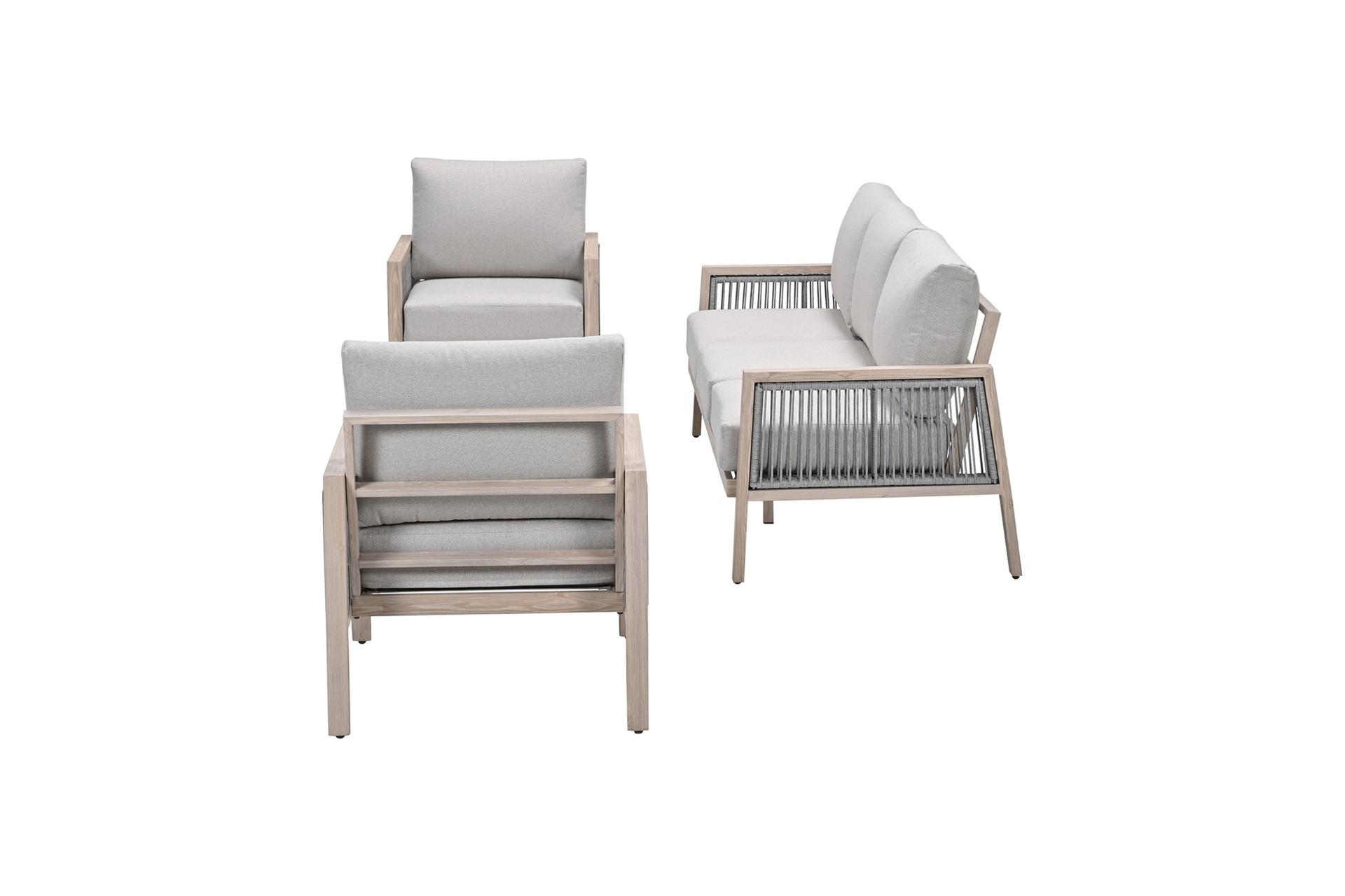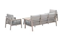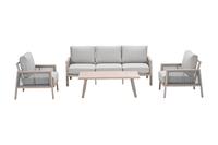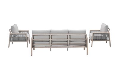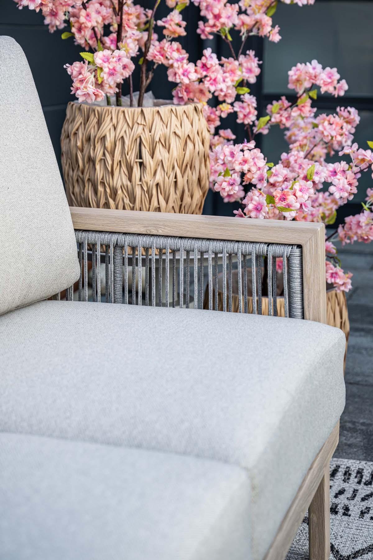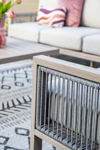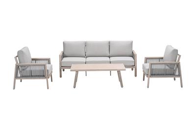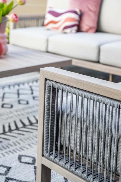 The Anderson Garden Lounge Set brings relaxed sophistication to any outdoor space, offering generous seating for up to five people. The light brown frame pairs perfectly with the sand cushions to create a cohesive and inviting setting.