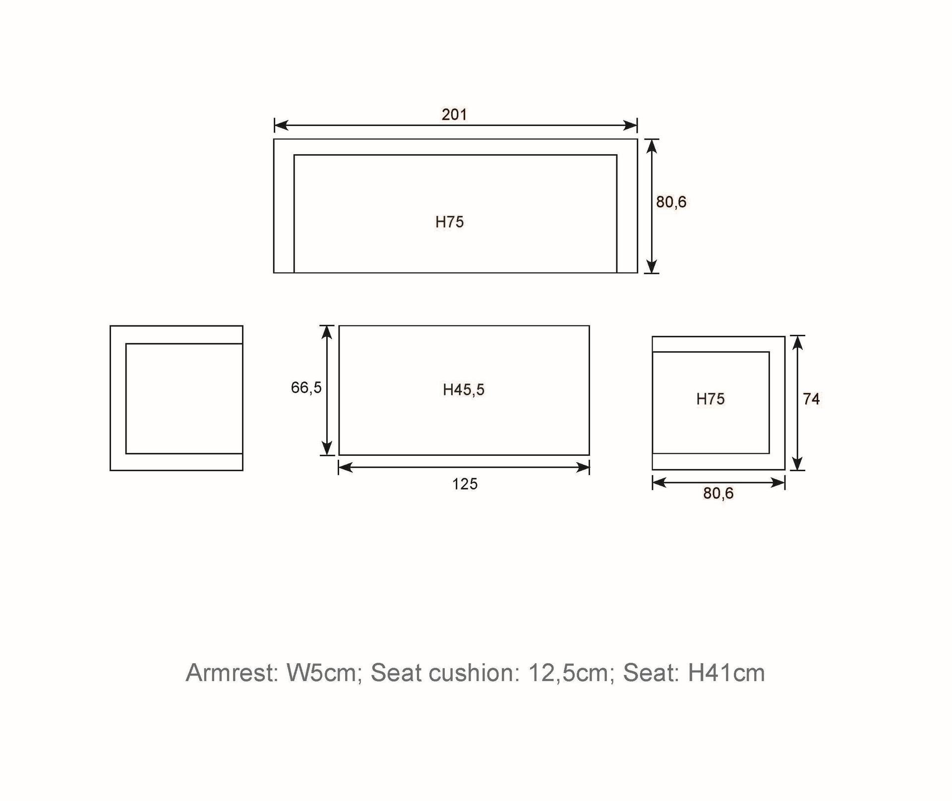 - 3-seater sofa (W201cm D80.6cm H75cm)