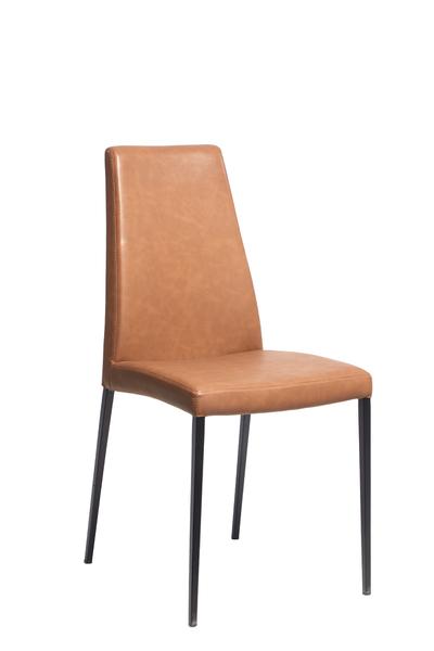 Meet the Aida chair, with metal frame and upholstered seat covered in regenerated leather. Boasting a minimalist and elegant design, the Aida chair stands out for its high backrest and slender line. The 4 legs, thin but resistant, are made of coated metal in the same finish as the seat, a detail of great aesthetic value. A chair that decorates the dining room with elegant personality.