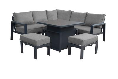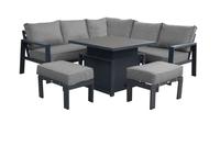 This luxury range consists of a compact corner sofa with ample seating and an adjustable pump-action table. The summer-proof cushions provide optimal comfort and are zipped for easy cleaning.