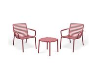 The slatted design is given a contemporary look for the Doga table, a monobloc low table in fibreglass resin with a round top and a new, lightweight design. It is handy to move, stackable, easily sanitised and entirely recyclable.