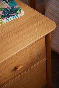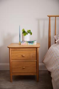 The Teramo bedside cabinet provides two spacious drawers for storage of personal possessions. The bedside table features the signature tapered turned shapes in the legs and curved profiles on the top surface.