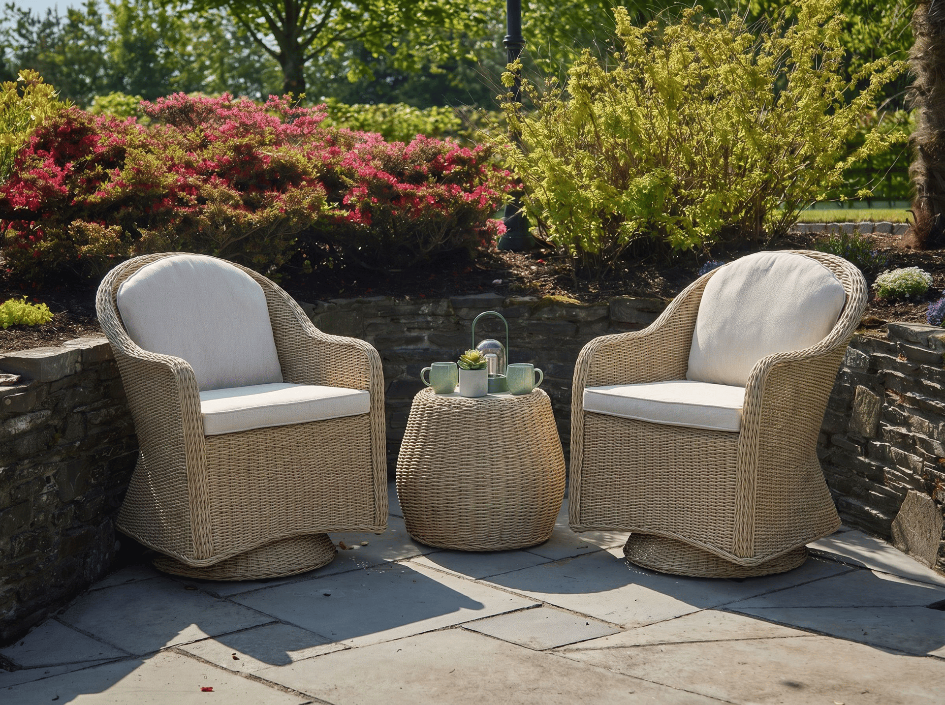 Enhance your intimate outdoor moments with the Hattie Garden Duo Swivel Lounge Set. Designed for both form and function, this set features two swivel armchairs, allowing you to follow the sun or easily chat to loved ones.