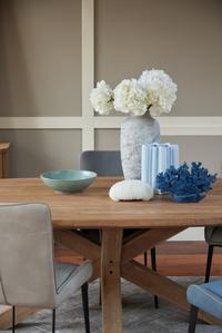 The Hugo 2400 oval table is beautifully finished with solid wood, double cross legs and oak top in a grey oiled finish. A beautiful, contemporary dining table that will complement modern or traditional decor.