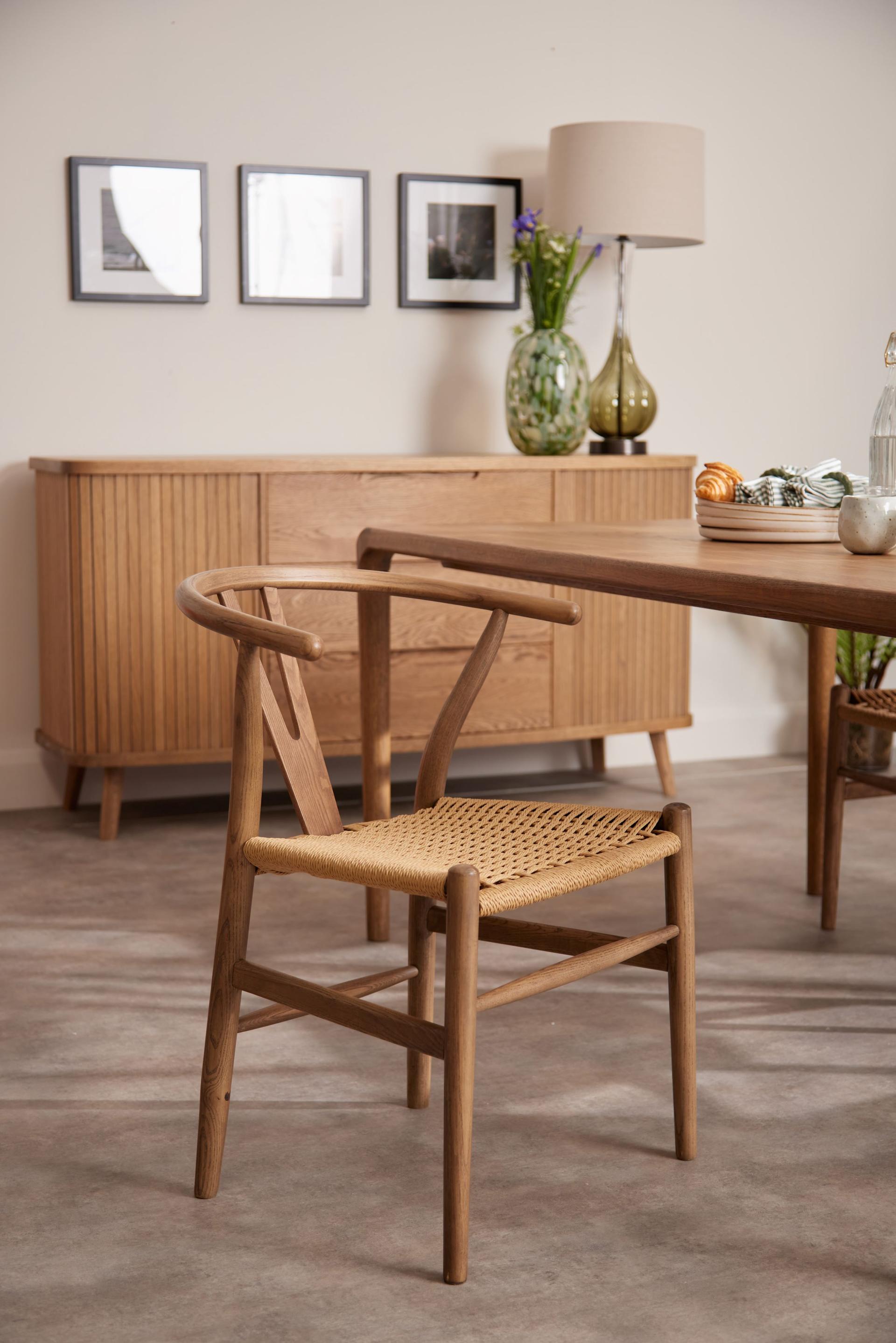 The iconic design and contemporary elegance of the Hugo Wishbone Chair with Natural Weave make it a timeless addition to any modern space. The Y-shaped backrest adds a distinctive sculptural aspect.