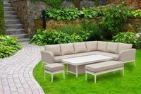 Enjoy style and convenience with the Iris Corner Lounge Set. This weatherproof suite can be left outside all year round and is mold and stain-resistant.
