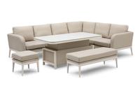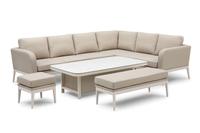 The spacious corner sofa, rising table, and matching stools are perfect for entertaining guests or lounging by yourself. With a sleek frame and acrylic fabric cushions, the Iris will be a standout addition to your garden or patio.