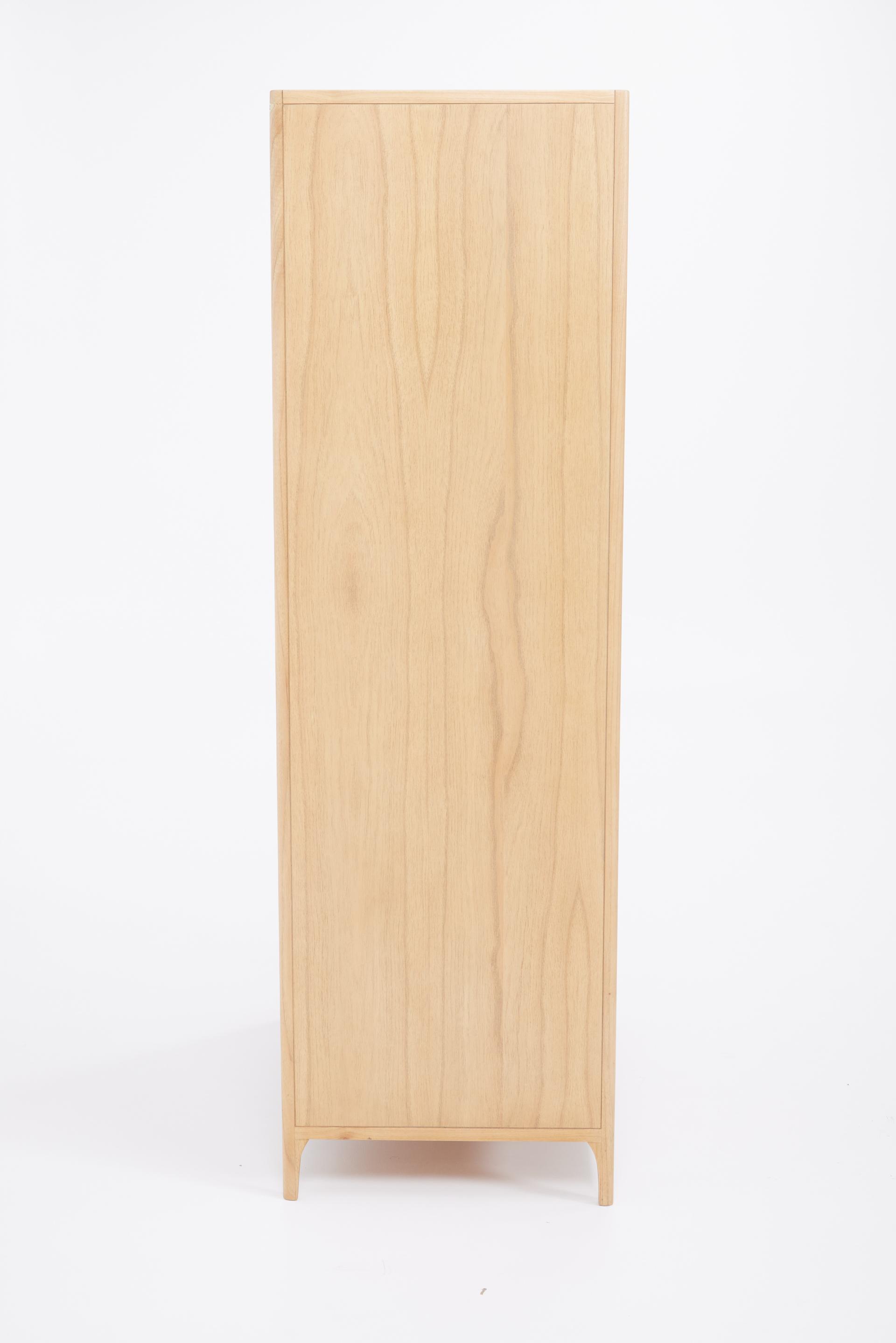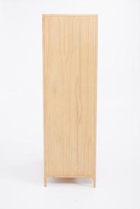 - Solid Mindi Wood with hand woven rattan door fronts and soft gold handles