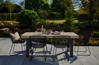 The sturdy table is carefully processed to achieve a distinctive timeworn look that invites character and structure to your garden. The six chairs compliment the table perfectly and add both comfort and visual appeal.