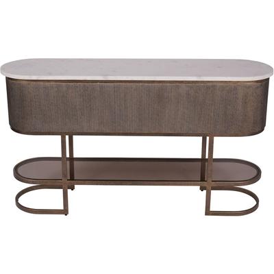 Experience modern sophistication with the Ladonne console table that optimises space without compromising style. The exquisite shelved structure is adorned in an elegant aged gold finish while the tinted glass shelf exudes a timeless charm.
