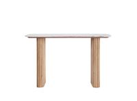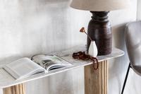 The Lille console table delivers stunning contrast that is sure to turn heads. A chic marble top is held up by unique wood panelling. Impressive by itself, but the perfect spot for frames, lamps and any other accessories you wish you display.