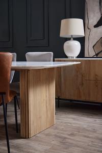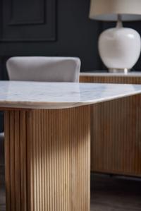 The Lille dining table is sure to impress all who dine on it. Intricate detailing of the marble is beautifully contrasted with wood pannelling to create a sophisticated piece perfect for contemporary homes.