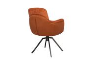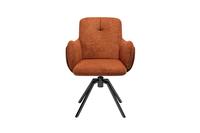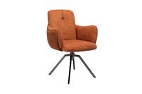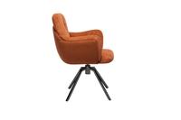 The Lydia Swivel Dining Chair boasts exceptional comfort with high arms and a generously padded seat and back. This chair features soft fabric upholstery on the inner section, while the outer surfaces are adorned with a sleek leather finish.