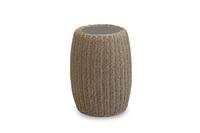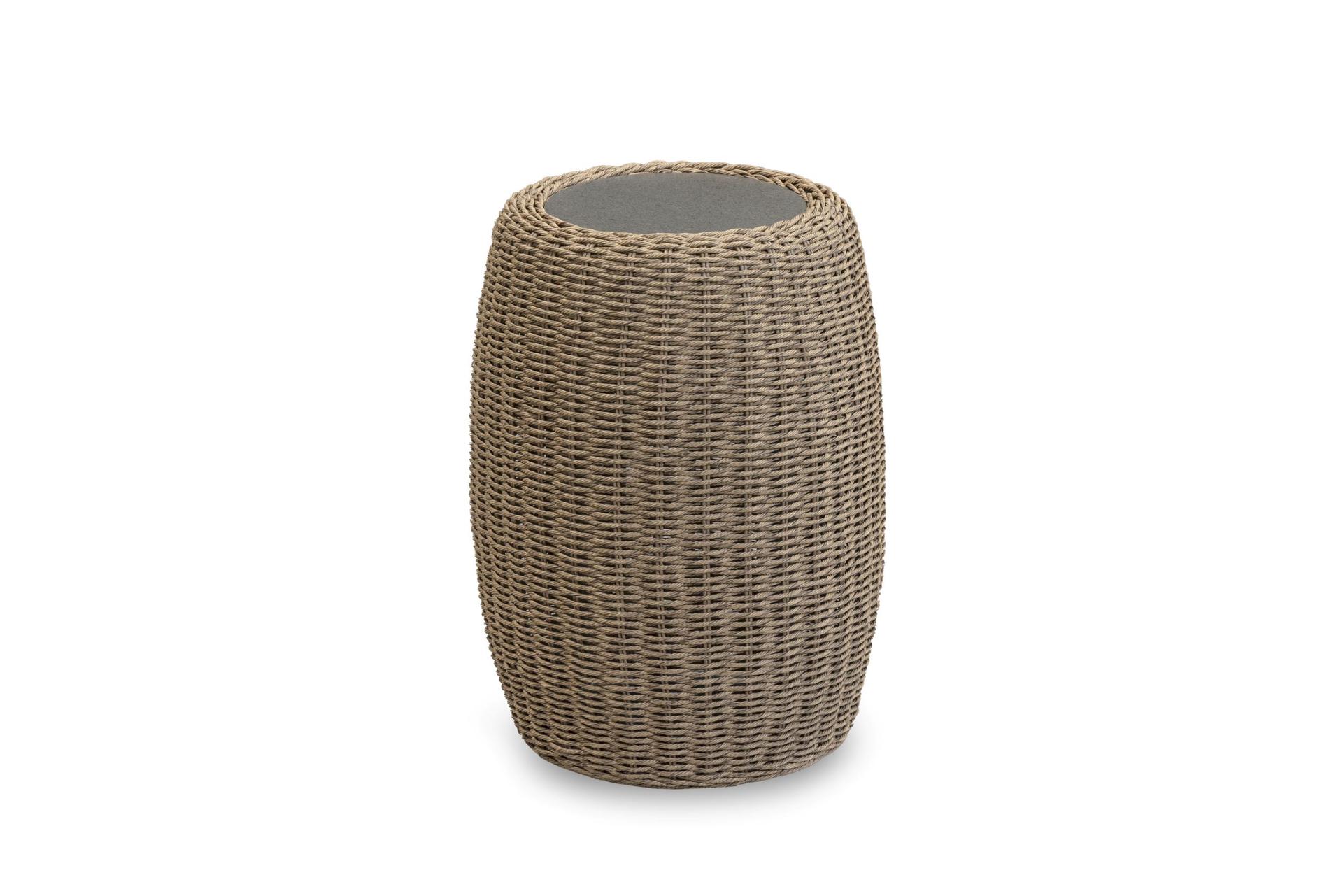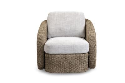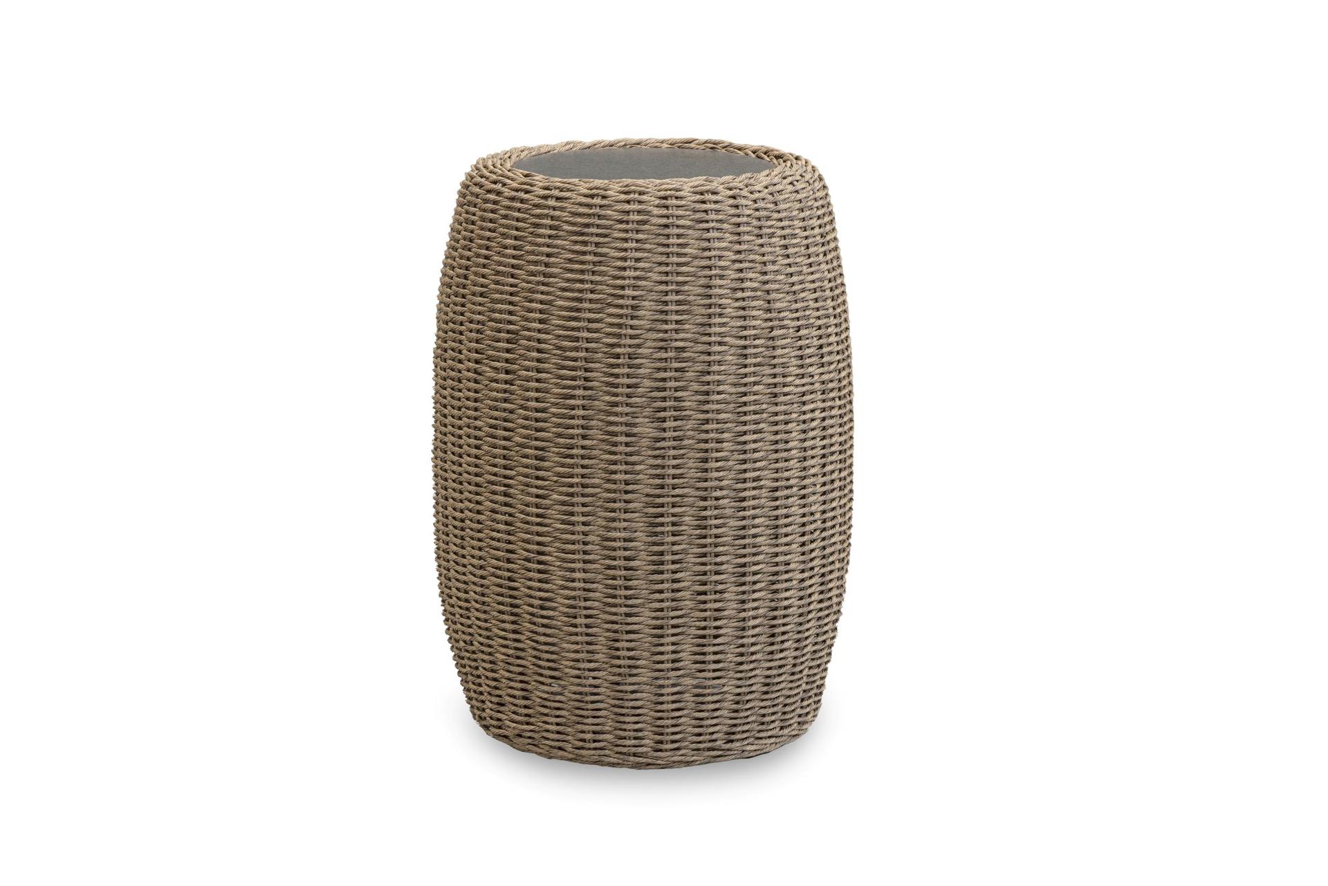 The contrast between the twisted rattan and the painted tempered glass creates an aesthetic that is both organic and refined.