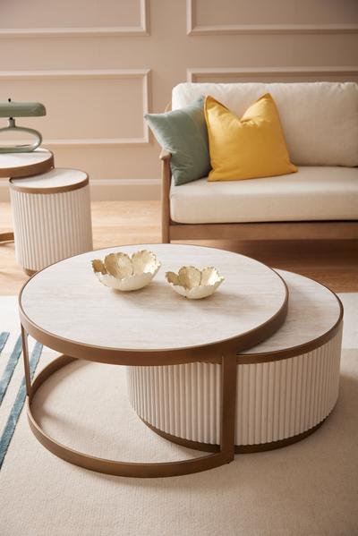 The elegant Marrick Coffee Table Set is sure to add a bright and airy feel to any living room. Use together as a decorative option, separate to hold drinks and snacks, or easily stack together when not in use.