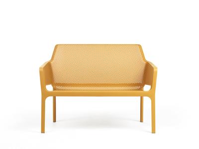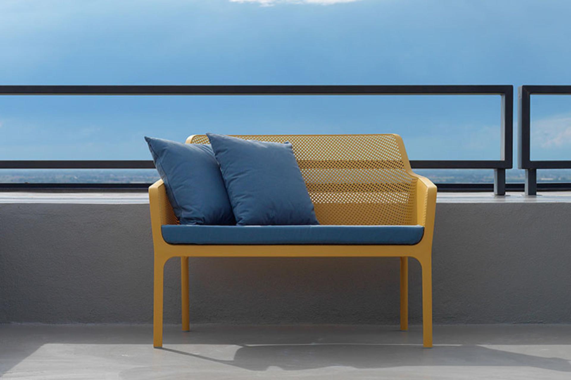 Romantic and welcoming, the Matilda is a fibreglass two-seater outdoor bench. Decorated with a radial pattern of square perforations, it has clean lines, a thin, seamless profile and is perfect for your garden, patio or balcony.