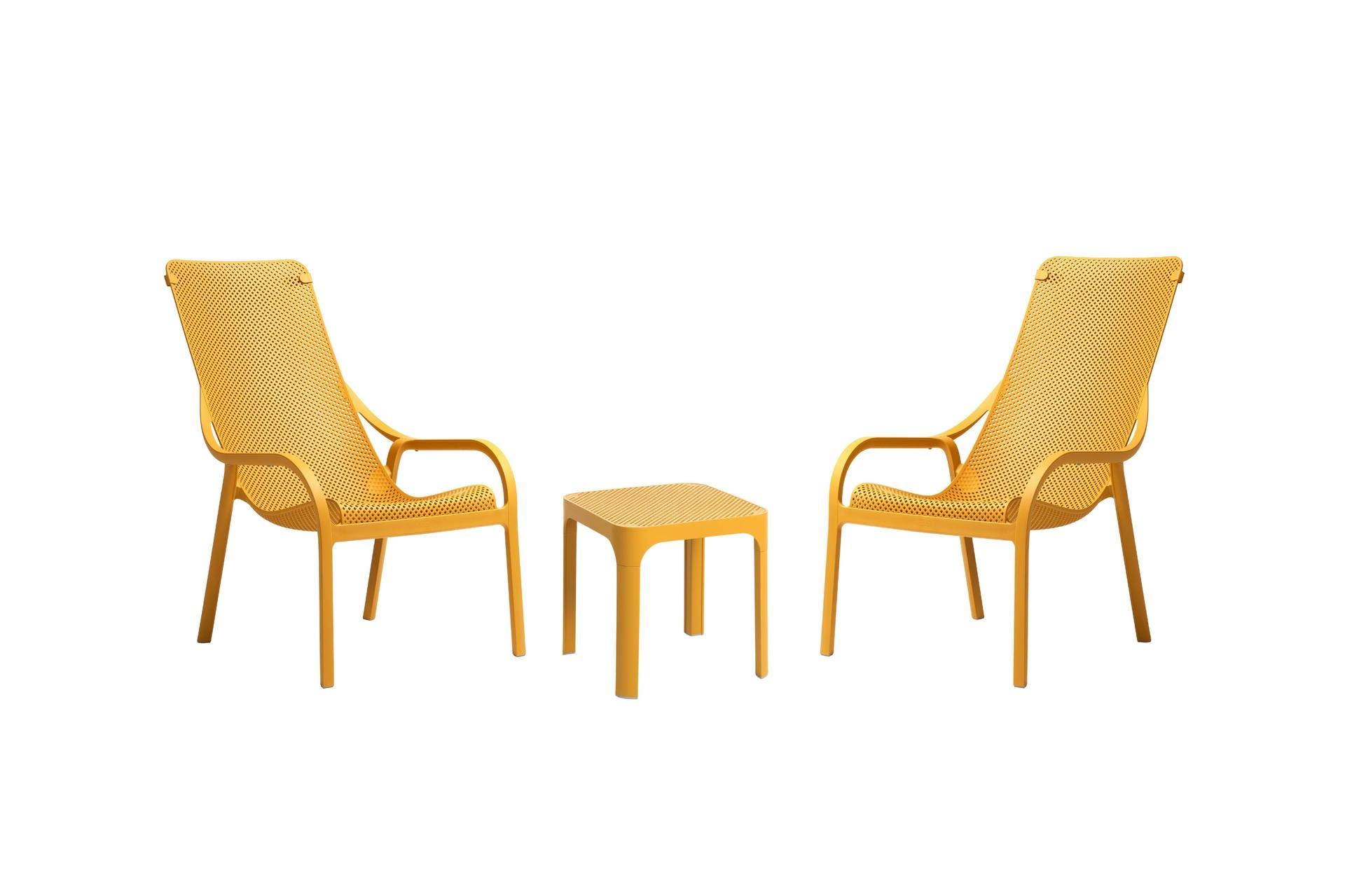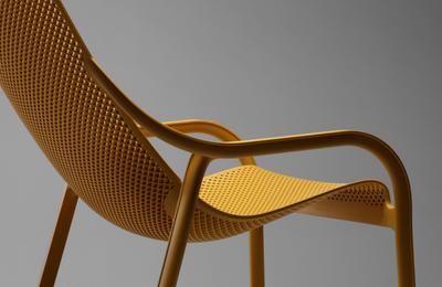 The Net conveys a sensation of well-being just by looking at it. The outdoor armchair in recyclable polypropylene fibreglass offers a generous deep seat, enveloping shape and wave-like profile.