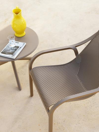 The Net conveys a sensation of well-being just by looking at it. The outdoor armchair in recyclable polypropylene fibreglass offers a generous deep seat, enveloping shape and wave-like profile.