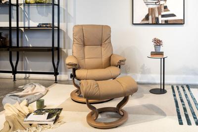 Infused with the style of the British capital, the Chelsea, Kensington, and Mayfair recliners meet the comfort you expect from Stressless with the sleekness their namesakes suggest. This classical collection employs gentle curves and padded arms for a supple look and feel, greatly enhanced by the patented Glide system and 360 degree swivel base.