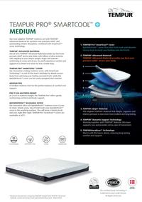 Our most adaptive TEMPUR® mattress yet with TEMPUR® Advanced Material for our best ever pressure relief* and outstanding motion absorption, combined with SmartCool™ cover technology. The TEMPUR Pro® SmartCool™ Medium is a medium mattress feel and at 21cm in mattress height it offers conforming comfort and body support.