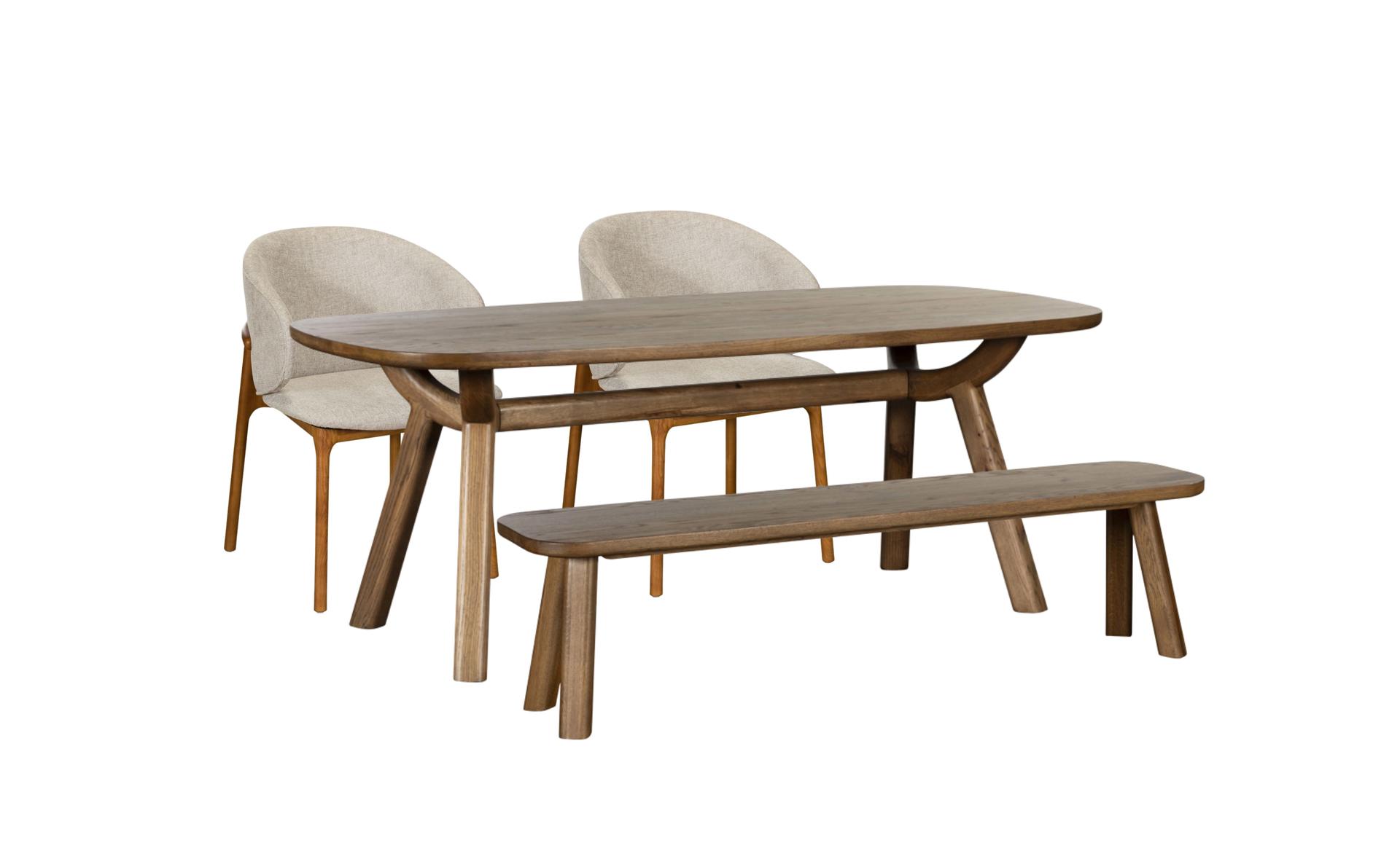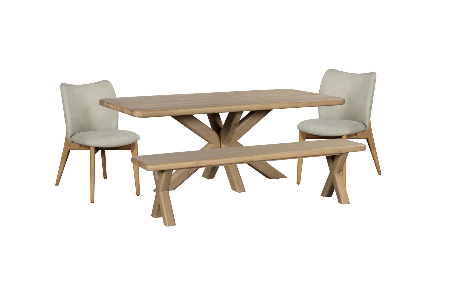 Complete your dining room! Save €640 when you buy the Rowan dining bundle. Includes 2 Brannon Misty chairs, a 200cm Rowan table, and a 180cm Rowan bench.